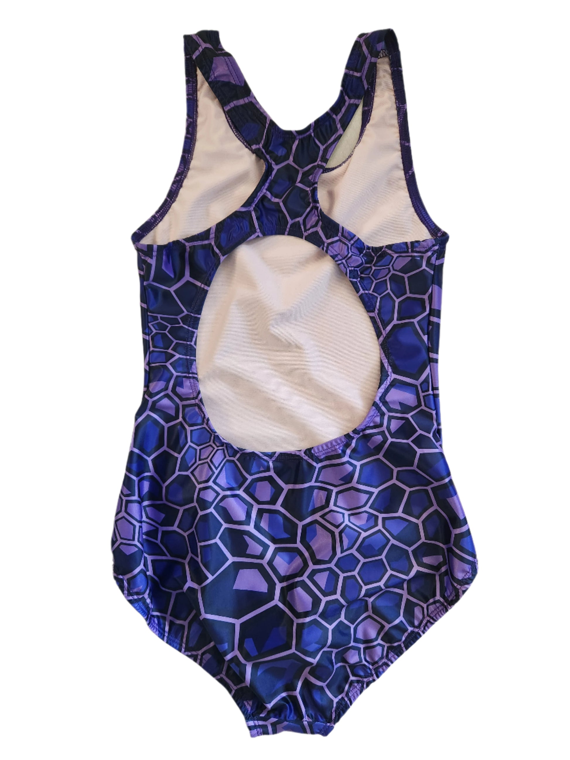 This Kikx full body fastback strap swimsuit for ladies and girls comes in purple hexagon design and is made from Extra Life lycra to outlast ordinary lycra so you can love your costume even longer!