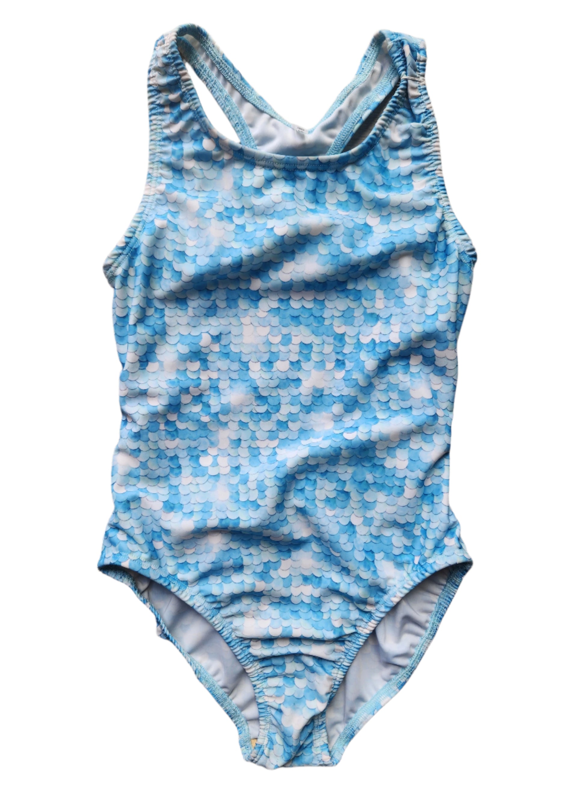 This Kikx full body fastback strap swimsuit for ladies and girls comes in a blue & white sequin effect design and is made from Extra Life lycra to outlast ordinary lycra so you can love your costume even longer!