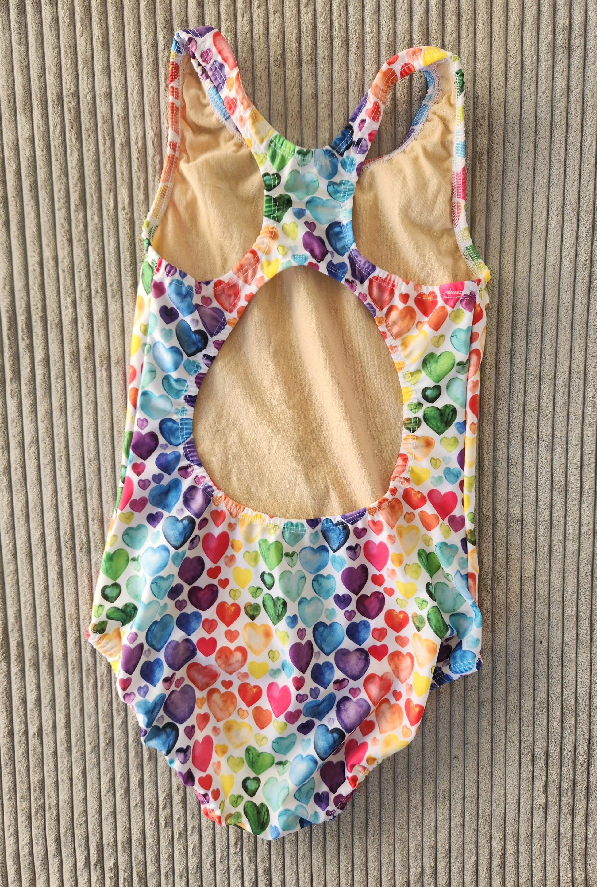 Extra Life Fastback Swimsuit in Rainbow Hearts Design