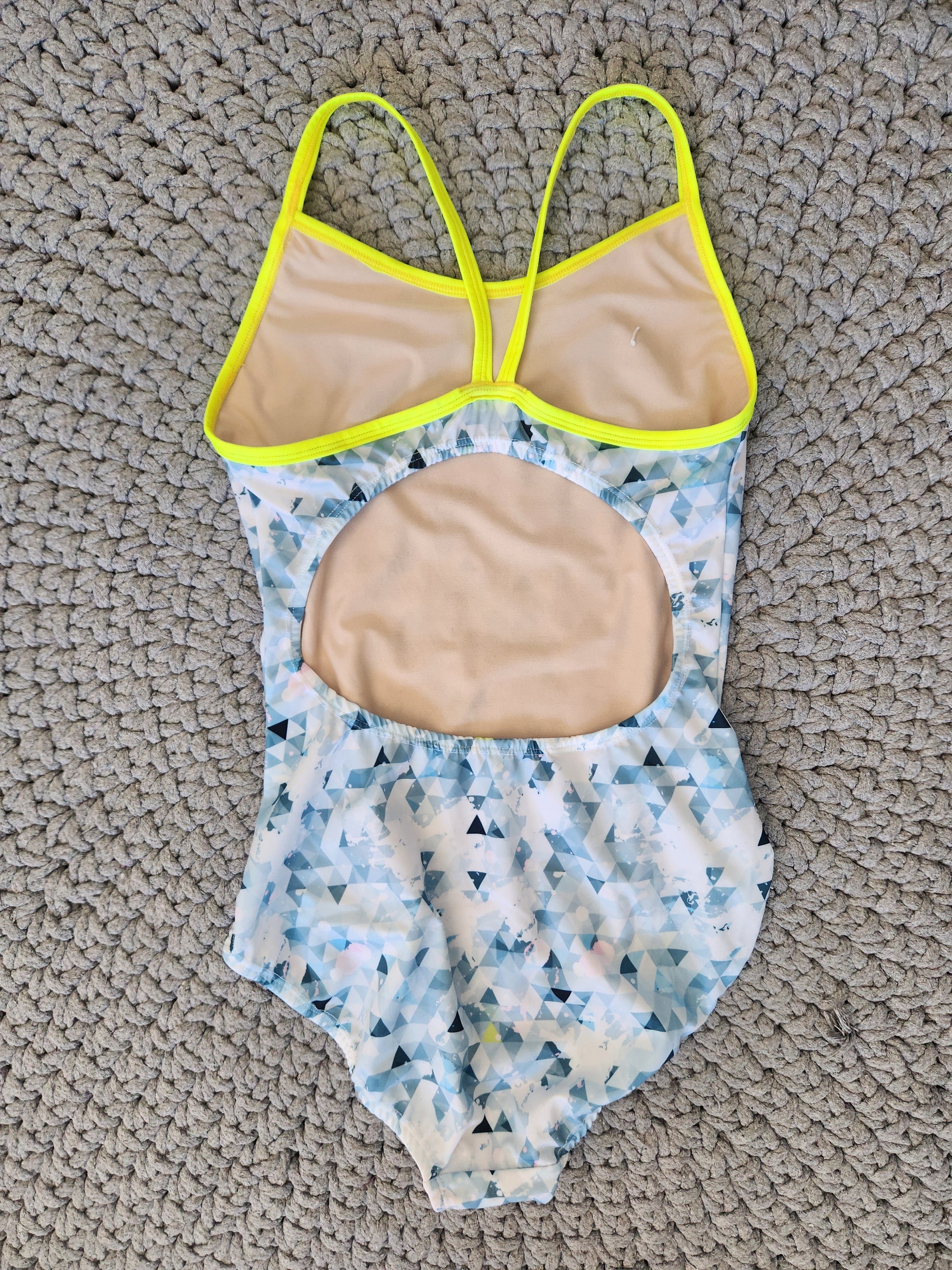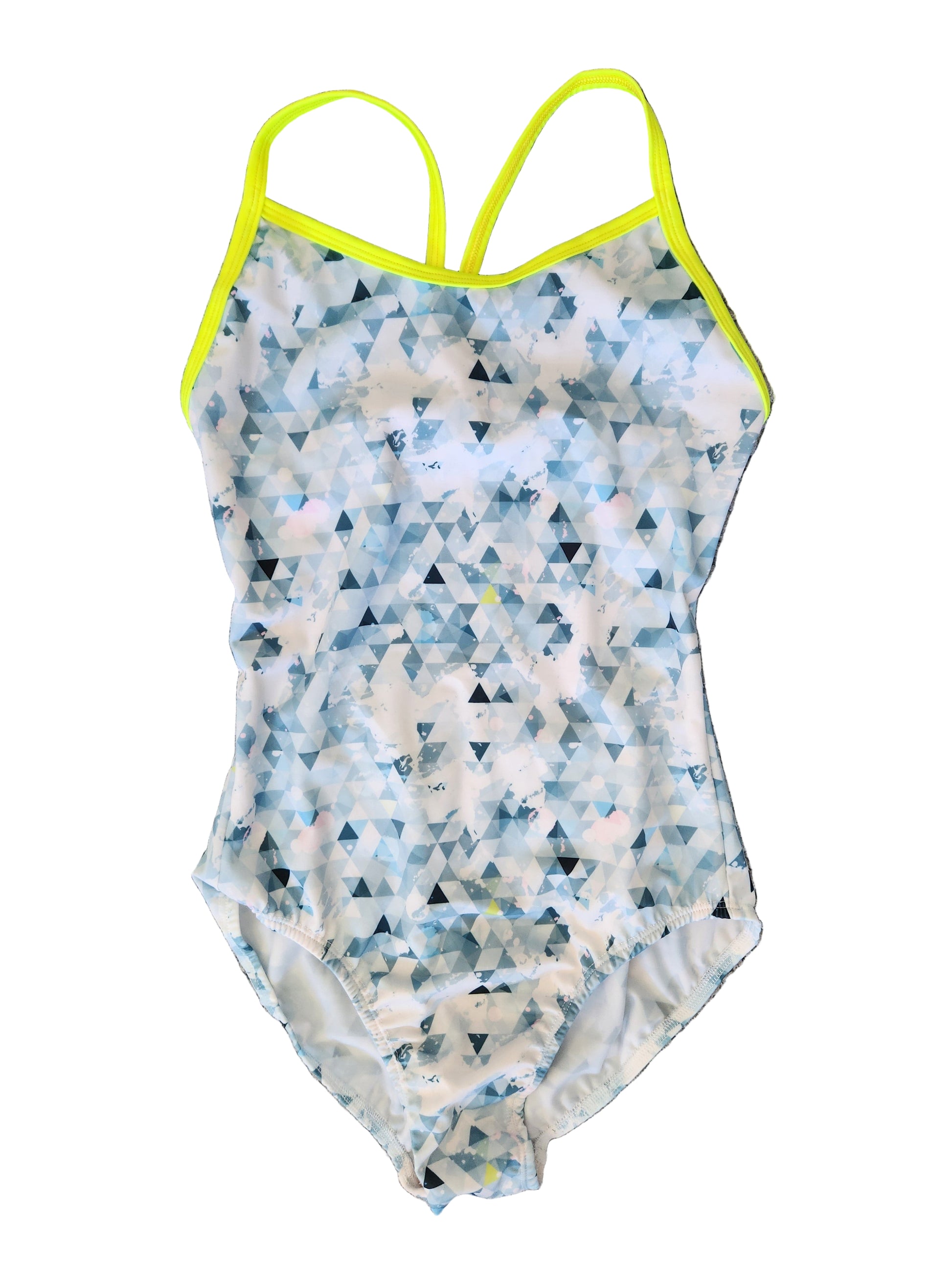 Extra Life Thin Strap Swimsuit in Diamond Dazzle Design on Grey & White with Neon Yellow Straps