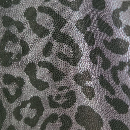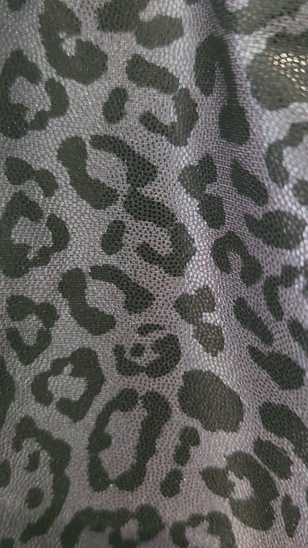 Enjoy style and freedom of movement in our standard tank cut, sleeveless Kikx gymnastics leotard which comes in mystique leopard print on dark grey shimmering fabric.